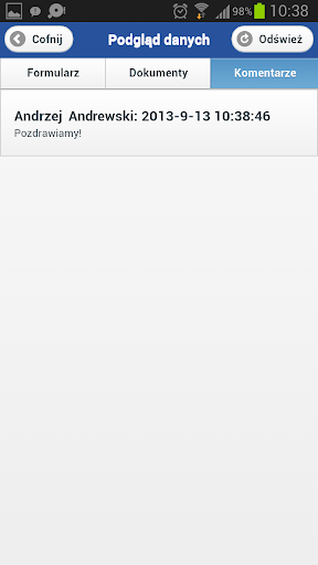 - wyświetlanie załączonych dokumentów do obiegu i komentarzy,
