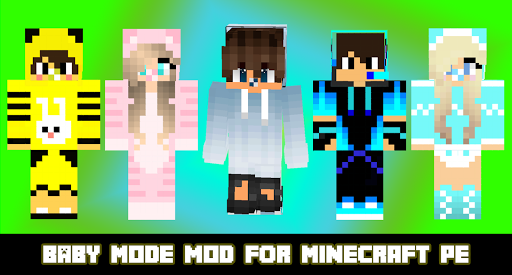 Mods dla trybu Baby Minecraft & Addon to dodatek, który sprawia, że możliwość staje się dzieckiem (znanym również jako małym osoba) w Minecraft Pocket Edition. Najlepszą rzeczą jest to, że działa dla każdej niestandardowej skóry. Jest to czysto wizualny mod, ponieważ nie zmienia żadnych cech gracza (np. Zdrowie lub siły).