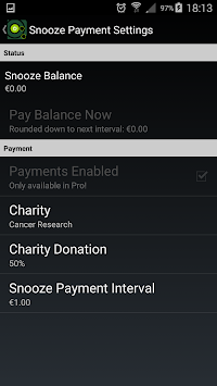 - Each time you hit 'snooze', your 'snooze amount' is added to your donation total