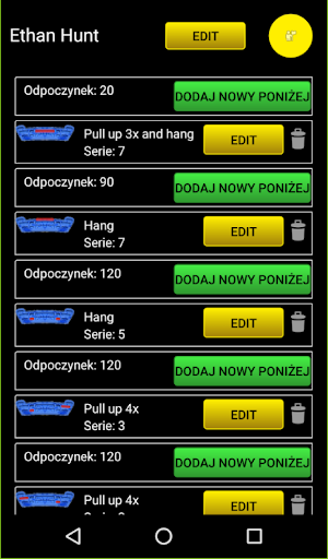 Aktualnie zaimplementowany jest prosty edytor treningów. Dodatkowo istnieje możliwość ręcznej edycji prostego pliku xml (sd card/ProjectTrainingPro/traings_custom.xml). W ten sposób możesz zmodyfikować trening zupełnie dowolnie. Wstawić własne opisy ćwiczeń które zostaną przeczytane przed ich wykonaniem a także podzielić się nimi ze znajomymi wstawiając spersonalizowane wiadomości ;). Na przykład: