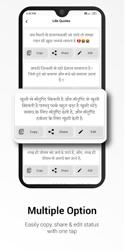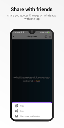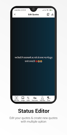 Możesz łatwo tworzyć nowy cytat życia hindi, shayari i życzenia ze zmianą czcionki, zmiana statusu, rozmiaru tekstu i zmianę tła.
