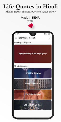 Najnowsze cytaty życia w hindi, statusie, Shayari & Editor z ładnym i atrakcyjnym wzorem. Możesz użyć tej aplikacji online lub offline. Cotygodniowe nowe cytaty życia aktualizowane.