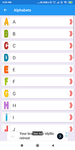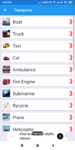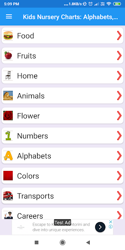 Kids Nursery Charts Mobile App pokazuje szeroką gamę zdjęć przedszkoli z nazwami i dźwiękiem zapewnia dużą kolekcję wykresów uczenia się poniżej kategorii: -