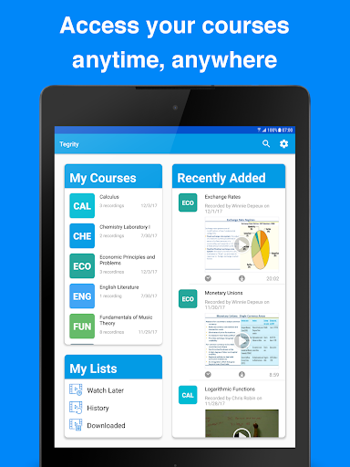 Darmowe dla wszystkich użytkowników ze skosztowości aplikacja Tegrity pozwala oglądać odtwarzania ze skośnie podczas nauki, bez względu na to, gdzie jesteś.