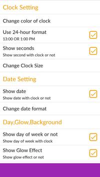 So many colour are available in clock live wallpaper and clock size own selected with settings.