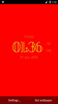 So many colour are available in clock live wallpaper and clock size own selected from settings.