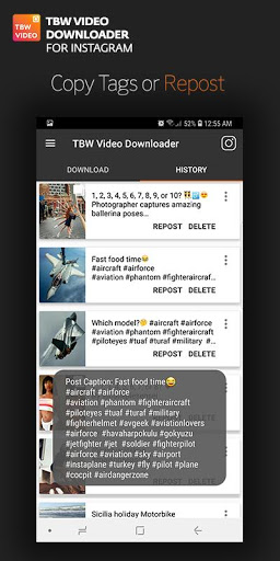 Aby pobrać lub repostować filmy, obrazy i slajdy z Instagram tylko skopiować link pocztowy. Jest teraz prosty! Wystarczy potrzebować TBW Video Downloader na Instagram. Z Instagram Video Downloader można łatwo skopiować tagi z Instagrama.