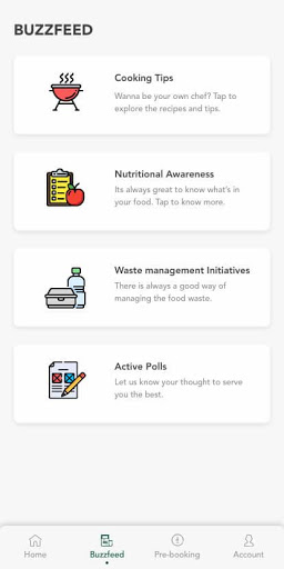Sekcja "Buzzfeed" jest angażowanie studentów o ogólną wiedzę na temat żywności, takie jak świadomość odżywcza, recepty i instrukcje i instrukcje studentów do przyszłego menu i gospodarki odpadów żywnościowych.