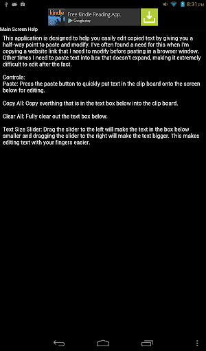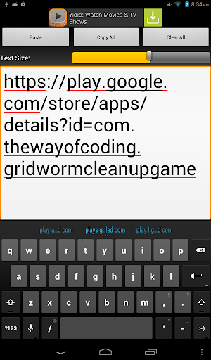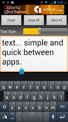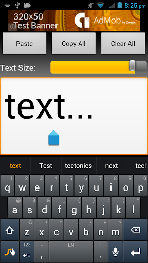 The app has paste, copy all, and clear all buttons to avoid the slow context menu.