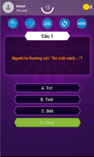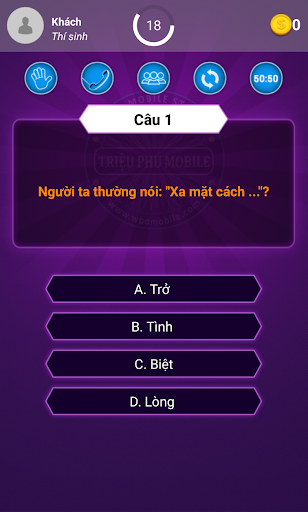 Mô phỏng gameshow Ai là triệu phú của VTV. Đem lại cảm giác thật cho người chơi với sự hướng dẫn của giọng đọc của người dẫn LẠI VĂN SÂM.