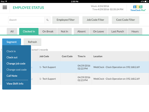 • Easily view employees’ hours, edit time segments, add call notes, and view shift info thanks to our user-friendly interface.