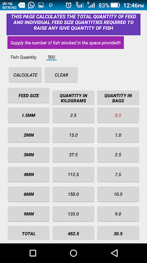 Czy kiedykolwiek zastanawiałeś się, ile paszy potrzebne do wzrostu ryby do dojrzałości? Ta aplikacja pomoże Ci obliczyć dokładną ilość każdego rozmiaru zasilania potrzebnego do wzrostu danej ilości ryb do rozmiaru stołu. Możesz wybrać zakup wszystkich kanałów luzem lub kupić określone ilości każdej w partiach i przełączaj się na większe rozmiary, gdy wyczerpujesz mniejsze. Rozwiązuje wyzwanie, że nie wiedząc, kiedy zmienić rozmiar zasilania dla ryb.
