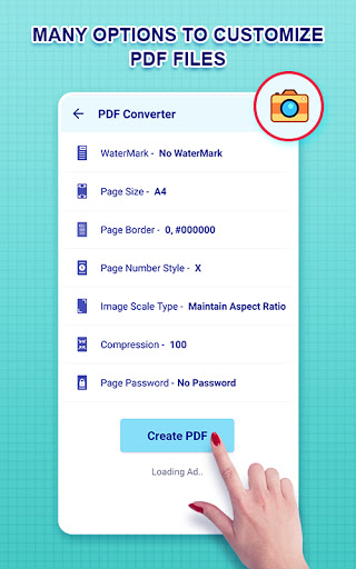 Możemy tworzyć plik PDF za pomocą obrazów z Twojej galeriilub za pomocą aparatu mobilnego.Możemy zastosować filtry do obrazów, aby wyświetlić więcej jakości i efektów.