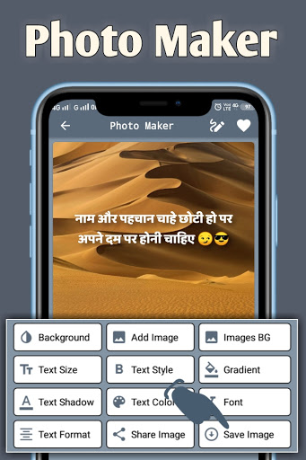 🌟 Quotes Creator (text on photo in hindi): With the help of this app you can create excellent attitude shayari, quotes and status. Good collection of image background, text style and font.