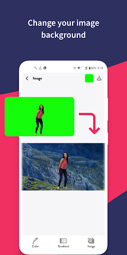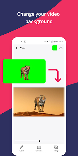 ▶ Chroma key Image-Video Creator application is a free app that offers a bunch of features such as changing the video background with color, containing thousands of colors to choose from as well as gradient color, selecting your favorite one, and changing your camera video, image background with it.