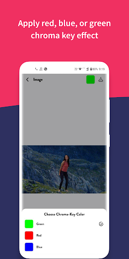 2. After that app will automatically apply the green screen effect you can also change the chroma key color to red and blue.