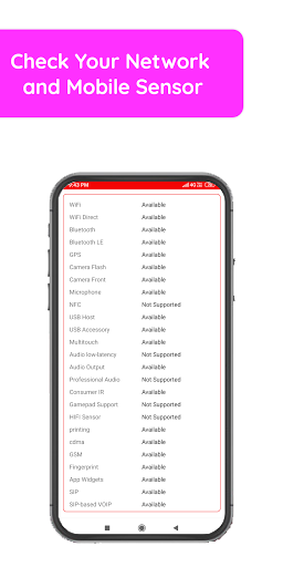 Aplikacja Informacje o urządzeniu Wyświetla informacje o systemie. Informacje o urządzeniu zapewnia podstawowe i zaawansowane informacje o sprzęcie telefonu, z atrakcyjnym i pięknym interfejsem użytkownika.