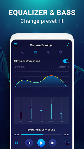 With Volume Booster - Music Equalizer 2020 / Music Booster /Sound booster you can not only enhance and control the volume according to your desire, but also play music and adjust the equalizer to experience vivid sounds, beautiful music effects.