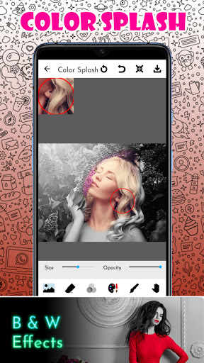 Must-ma Edytor zdjęć Photo z zaawansowanym pędzlem rozmycia. Służy do rozmycia części zdjęcia, aby uzyskać efekt rozmycia DSLR. Możesz także usunąć obraz z gumką i dostosować swoją wytrzymałość rozmycia.