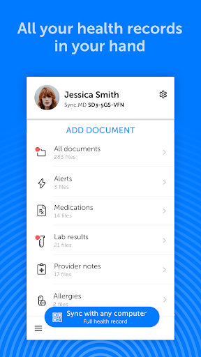 - natychmiast przyznać dostęp do swoich rekordów zdrowotnych. Zapewnij dostęp do wybranych dokumentów do dowolnego urządzenia z przeglądarką - w domu lub w dowolnej klinice w dwóch prostych krokach: 1. Wybierz dokumenty, które chcesz udostępnić u lekarza w aplikacji sync.md.