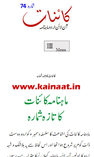 KAINAAT is an online Urdu ADABI monthly magazine being published since 2001 from Kolkata, India. Edited and maintained by Khurshid Eqbal. This magazine is totally FREE. No subscription is required. Just download this app and read magazine every month FREE. Articles, Poetries, Ghazals, Stories etc. from reputed writers and poets from all over the world are published in this magazine.