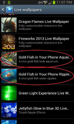 ****ALERT****We want to thank you for helping us reach a milestone today of over 200,000 installs and growing!Due to the numerous requests to upgrade our Goldfish In Your Phone interactive Wallpaper, we have now packed 2 APPS INTO ONE!!!Simply choose between the single existing popular goldfish live wallpaper, OR...The 2nd version with more interactive goldfish swimming in your phone with updated fish Aquarium featured background images to give your phone even a more real life fish-tank experience for you.Listen to what some of what thousands of other users who have downloaded the app have to say about this very cool application!:SIDDARTH"This one is my most favourite live wallpaper. No other wallpaper was able to impress me this much. Its superb."google USER"Great fiiisshhh cooolll"DHAVAL"It is vry nice fish"yaseen "woooooow very very cute !!!!!!!!!!!!!!!!!!!!!?!??!?"SOHEL"amazing"DanielR"A fish app above the rest..thanks!"Thanks to all of you who have provided in the interactive experience of this very cool application!--we will be updating this app every month or so with cool new features, so please do not uninstall!Please read instructions below and view in the promotional images published for accurate set up, and how to save the 2 different wallpapers options on your phone!EASY STEPS FOR YOU TO INSTALL:Simply go to your "LIVE WALLPAPER SETTINGS"You want to "SET WALLPAPER" either to your "HOME" or "lock SCREEN"Choose "LIVE WALLPAPERS"Then simply choose between the 2 different wallpapers in this app:GOLDFISH IN YOUR PHONE AQUARIUMor.....GOLDFISH IN YOUR PHONE RIPPLEThen when you decide which one of the 2 application you want to set, simply press the "SET WALLPAPER" option and you are ALL SET!!!Interactive Goldfish In Your Phone LWP motion,save as a wallpaper or background freeWatch real Goldfish in Live water container with real ripple water effects, swim in GoldfishIn Your Phone LWP for Free on phoneGoldfishIn Your Phone LWP gives a detailed accurate visual affect of real goldfish in the sea motion wallpaper on Google play.Watch the moving water ripples as they move in real motion time, for you to enjoy for hours. Or choose the second of the 2 fish in your phone applications where you can see fish swimming in the aquarium, See the beautiful goldfish underneath the real water as if you are looking into the sea with your own eyes.GoldfishIn Your Phone LWP is sure to impress!This is the most accurate depictions of movement of water.Tap the phone with your finger to create the ripple effect of water moving on your phone.It does not get any more real that this.You will quite simply never use another screen save again. This is sure to amaze!You will be amazed by the super high quality water moving with a live ripple effect in the goldfish tank.A natural feel that will blow you away.You canChoose between ripple sizesChoose Ripple Speed settingsChoose Ripple DurationYou can even choose Image quality (Low/Medium/High)This is simply the very best quality deep sea live ripple wallpaper you will ever see.Install for FREE todayWe hope you enjoy this wonderful high quality Goldfish in your phone application as much as we did making it for you!We ask that after playing with this application that you leave a positive review so that other users can benefit from your comments and enjoy this very top GoldfishIn Your Phone LWP applicationWe want to keep the app completely free, In order to keep free is ad supported and may contain ads in the notification tray and or home screen. This will help keep it free and help us bring you more cool apps like this in the future.You can optout notification ads from:Airpush Optout: http://www.airpush.com/optoutSendDroid Optout: http://senddroid.com/opt-out/every mobile landing page that the user is directed to has an "unsubscribe" link at the bottom, which opts-out a user with a single click.