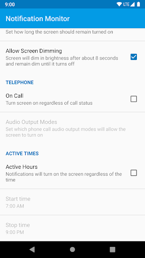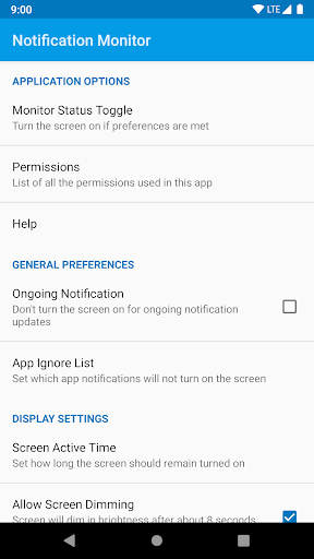 Notification Monitor is a simple application that turns on the screen on your Android device when you get a notification from any app. Notification Monitor provides options when the screen should turn on such as time of day, how long the screen stays on, and more. Once the app has been setup and configured the way you like, you don't have to worry about it or launch the app ever again unless you want to change some preferences.