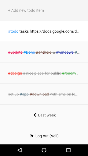 Use it for a quick and pretty overview of your current week's "Plans/Todo" items and quickly mark them as "Progress/Done" with an intuitive swipe. For the full-featured Weekdone Android app please refer to https://play.google.com/store/apps/details?id=com.weekdone.android