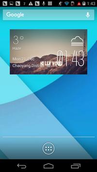 With a simpleclick on different areas, users can conduct a series of operations: settingalarm clock, calendar event, changing widget skins, reading detailed dailyweather report and check 7 day forecast and hourly forecast.