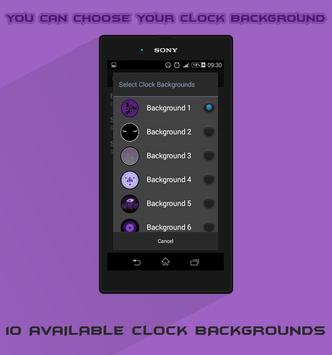 ► 10 different clock backgrounds ( Skins ).