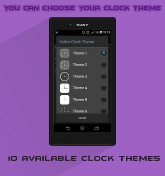 ► 10 different clock themes ( Clock face ).