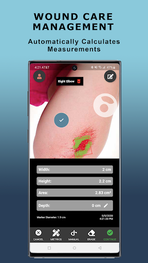 • Wound Photos: instantly capture, auto-measure and attach patient wound images to the health record