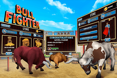Fighting be the Bull Fighter The Matador. Bull Fighter the only game that gives the experience of Bull Fighting on Mobile now.Be the Matador and fight Bulls. Swipe / Tap to move the cape to avoid the angry Bull and swipe / Tap to pierce the Bull with your lance.Face five of the most furious bulls in arena, each with more power. These humongous beasts are gonna chase you wild. Your skills of survival will save you. Collect Power ups like instant health refill and shield protection for few seconds.Heal yourself in time or by paying coins.Purchase apparels that give you more health. Buy interesting bonuses that give you edge to face the brute strength of these fierce beasts. Exhaust bull's stamina before you get knocked out.Thoroughly enjoy this one of a kind game!