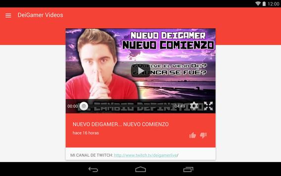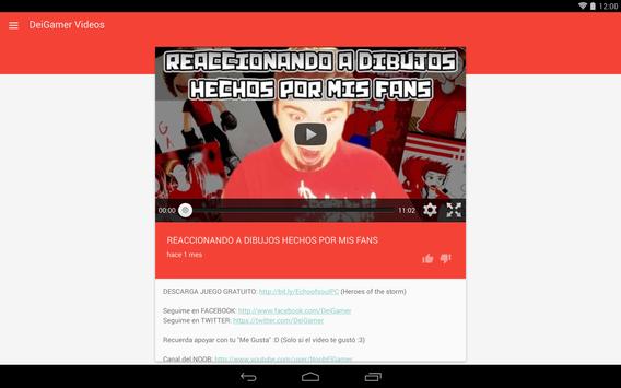 Todo el material mostrado en esta aplicación es obtenido de la API pública de YouTube™. Esta aplicación no es capaz de subir videos de ningún tipo a YouTube™. DeiGamer videos es solo una forma fácil y unificada de ver y navegar los video de YouTube™ del Youtuber DeiGamer sin necesidad de usar el navegador.
