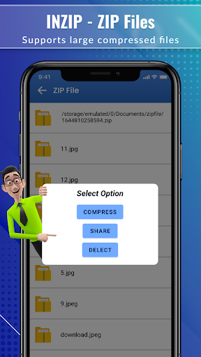 INZIP - ZIP Files is the best file extractor application to extract RAR/Zip files on your android device. The unpack zip app can easily unzip files and saves all your documents in app folders. There is a simple interface and you can compress the files including images, documents, and videos.