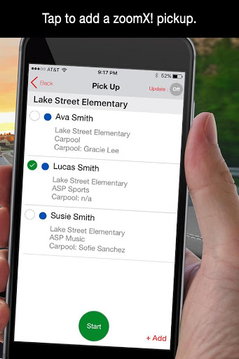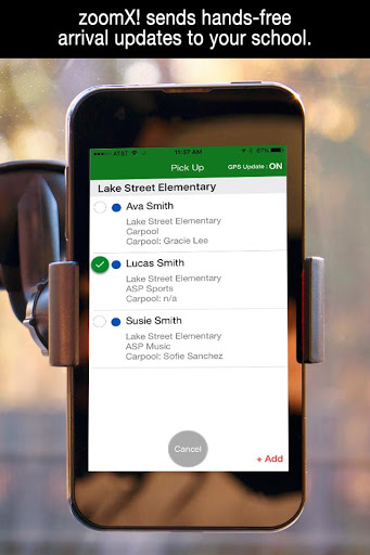 As you drive, let the hands-free zoomX! app update your school with your arrival, so they can have your student ready, and you can have a faster pick up.
