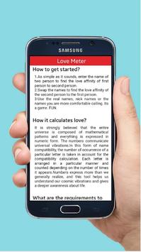 Take a test with Love O Meter: Real Love Tester love calculator and find your real love match in seconds. You can easily calculate your love compatibility and the chances of a successful relationship with our deluxe love detector application. It's time to download the Love O Meter and find your love match perfect meters. Enjoy!