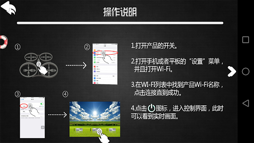 Helicute GO 是一款通过手机操控四轴飞行器的APP,你可以通过手机端随时观看无人机拍摄的实时视频,也可保存图片或录制视频以备未来查看。主要功能: 1.定高模式。 2.一键起飞、一键下降、紧急停止。 3.一键返航、无头模式、360°旋转。 4.自动保存参数、重置参数、右手模式。