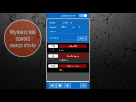 W nowej wersji dodano możliwość definiowania własnych skal. Teraz możesz automatycznie wyliczyć stężenie, ciężar właściwy, temperaturę zamarzania itp. Wystarczy, że znasz zależność pomiędzy wartością mierzoną przez PAL a wartością wyliczaną. W równaniach możesz stosować praktycznie dowolne funkcje matematyczne, zgodnie z ogólnie przyjętą notacją.