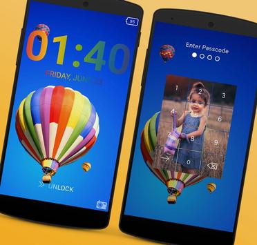 Set balloon animation on lock. Balloons are flying on sky like real. This full clock lock screen has contain lots of beautiful backgrounds for design lock.
