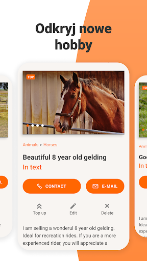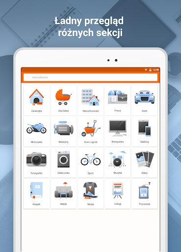 • 20 kategorii głównych i 430 podkategorii, w tym: Motoryzacja, Dla Dzieci, Dom i ogród, Maszyny, Praca, Usługi, Meble, Moda, Nieruchomości, Zwierzęta i wiele innych.