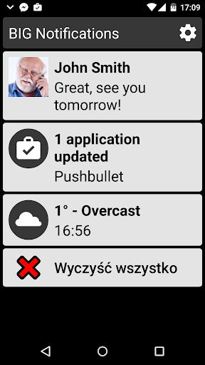 ✓ Powiększaj powiadomienia systemowe i wyświetlaj je na całym ekranie z dużą czcionką.
