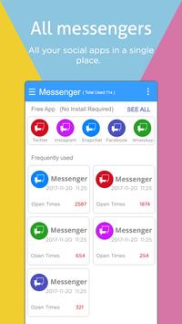 With this application, you just need one click to open your most used messenger app whenever you want to have a chat with your families and friends. It also show the number used and the recent time use for each messenger application.