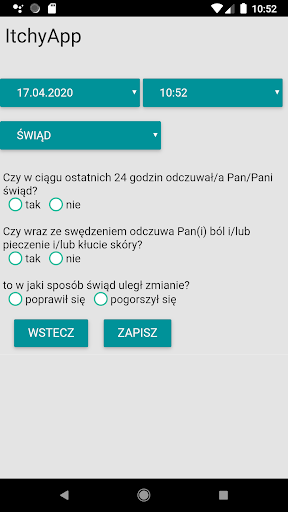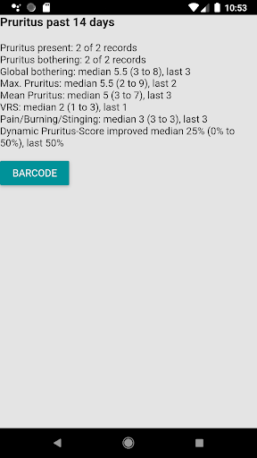 Pacjenci z przewlekłym świądem (świądem) mogą udokumentować swoje objawy za pomocą tej aplikacji. Kwestionariusz został opracowany przez europejski zespół ekspertów. Jeśli regularnie odpowiadasz na te pytania, aplikacja może przedstawić lekarzowi podsumowanie twoich objawów. Twoje dane mogą być przesyłane z kodem kreskowym.