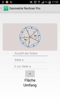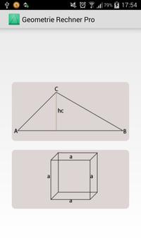 This app is much easyer. Geometry calulator simplyfy the calculation for surface, perimeter, curved surface and volume. With a click on the graphic art it turns around and you can see the