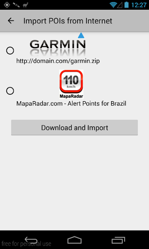 - Downloads and imports POI-files directly from the internet ... MapaRadar preconfigured!