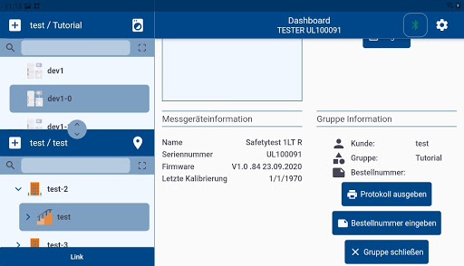 Mit der App können folgende Prüfgeräte per Bluetooth angesteuert werden: