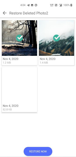 tylko jedno kliknięcie, wszystkie usunięte zdjęcia, które wybrane zostaną przywrócone do przechowywania telefonu.