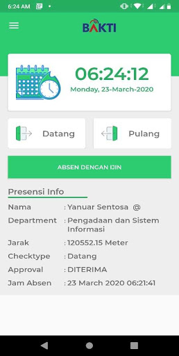 Aplikasi absensi Bakti Kominfo guna mendukung Good Governance untuk absen harian menggunakan mobile app dan pada saat WFH (Work from Home)