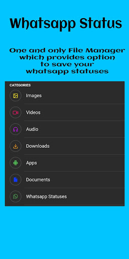 SR Menedżer plików jest jedynym menedżerem plików, aby zapisać swoje statusy WhatsApp jednym kliknięciem.